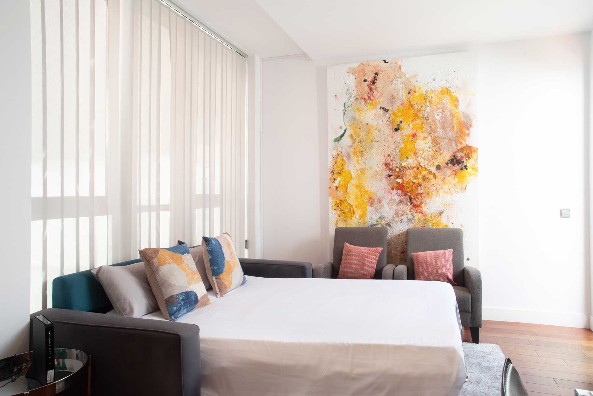 Descubre en imágenes cómo es alojarte en Apartamentos Libertad24, en pleno centro de Madrid. Nuestra galería de fotos muestra cada detalle de los apartamentos turísticos: espacios luminosos, decoración moderna y todas las comodidades para que te sientas como en casa. Recorre visualmente nuestras habitaciones, zonas comunes y la ubicación privilegiada junto a Gran Vía y Chueca. Si buscas un apartamento turístico en Madrid con estilo, confort y la mejor atención personalizada, aquí podrás ver todo lo que te espera antes de reservar tu estancia.
